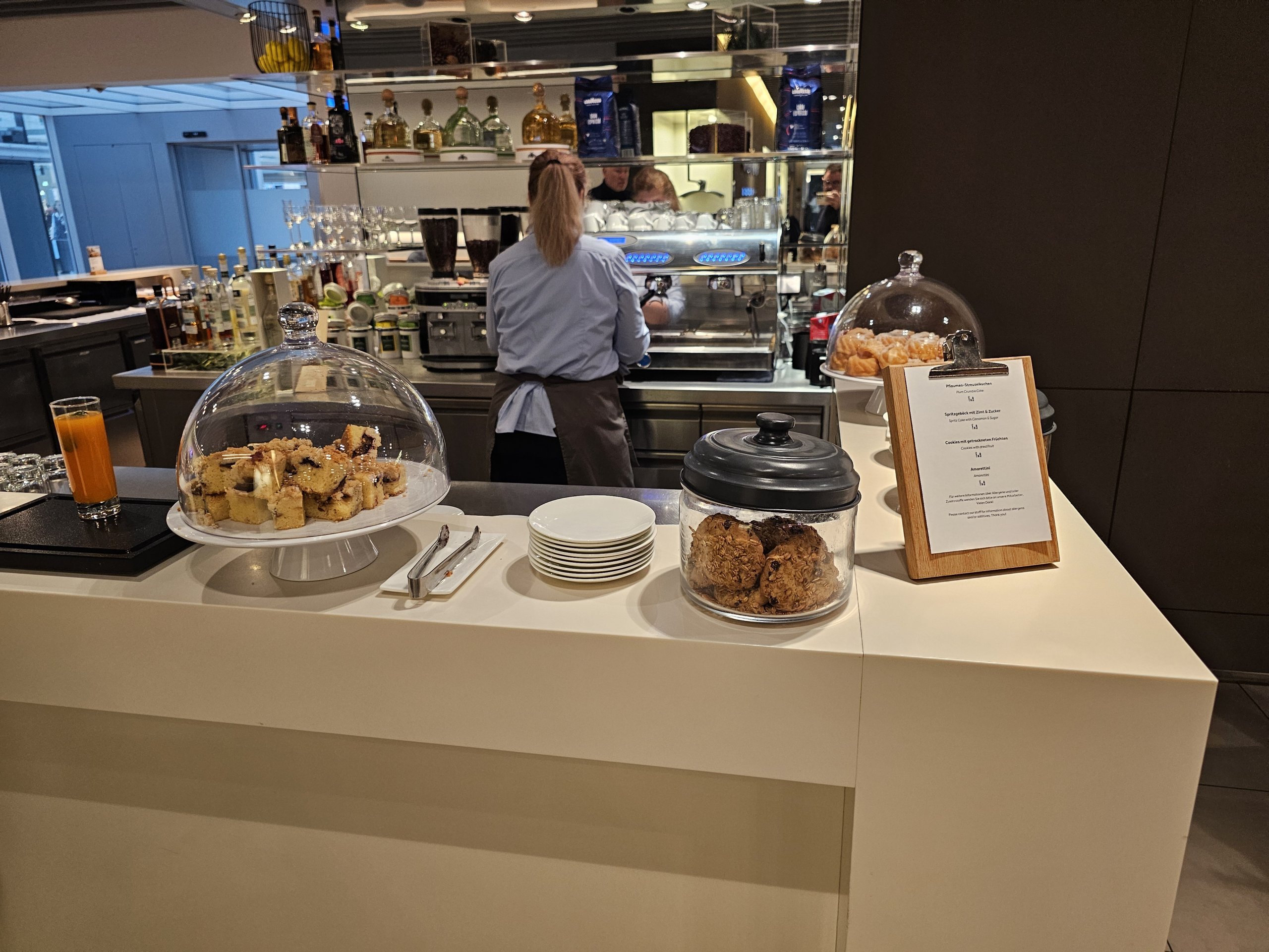 Őszintén szólva nem sok különbséget veszek észre a Lufthansa normál Business Class váróterméhez képest. A fő különbség egy bár jelenléte, ahol sokkal nagyobb az alkoholos italok választéka, de mivel szólóutazáson nagyon kevés alkoholt fogyasztok, ez a változás számomra egyáltalán nem jelentős.