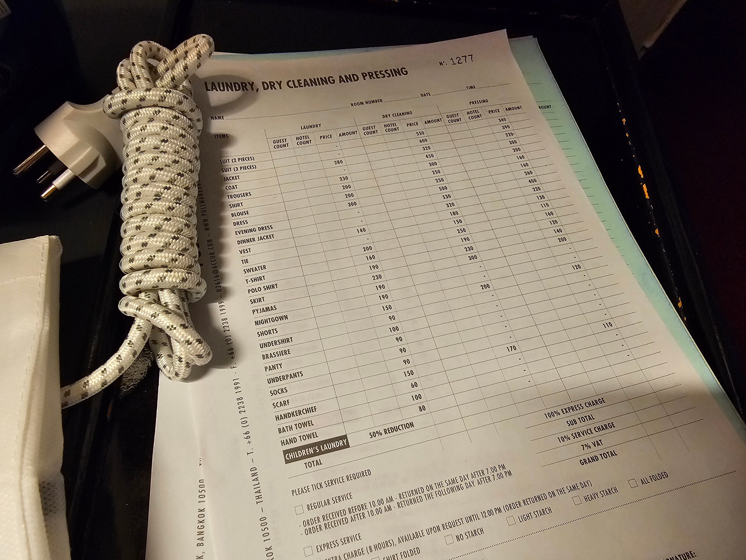 Természetesen van mosodai szolgáltatás is - csak hagyja a piszkos szennyest egy zsákban a szobában, és másnapra visszakapja a szennyest a szobájában.