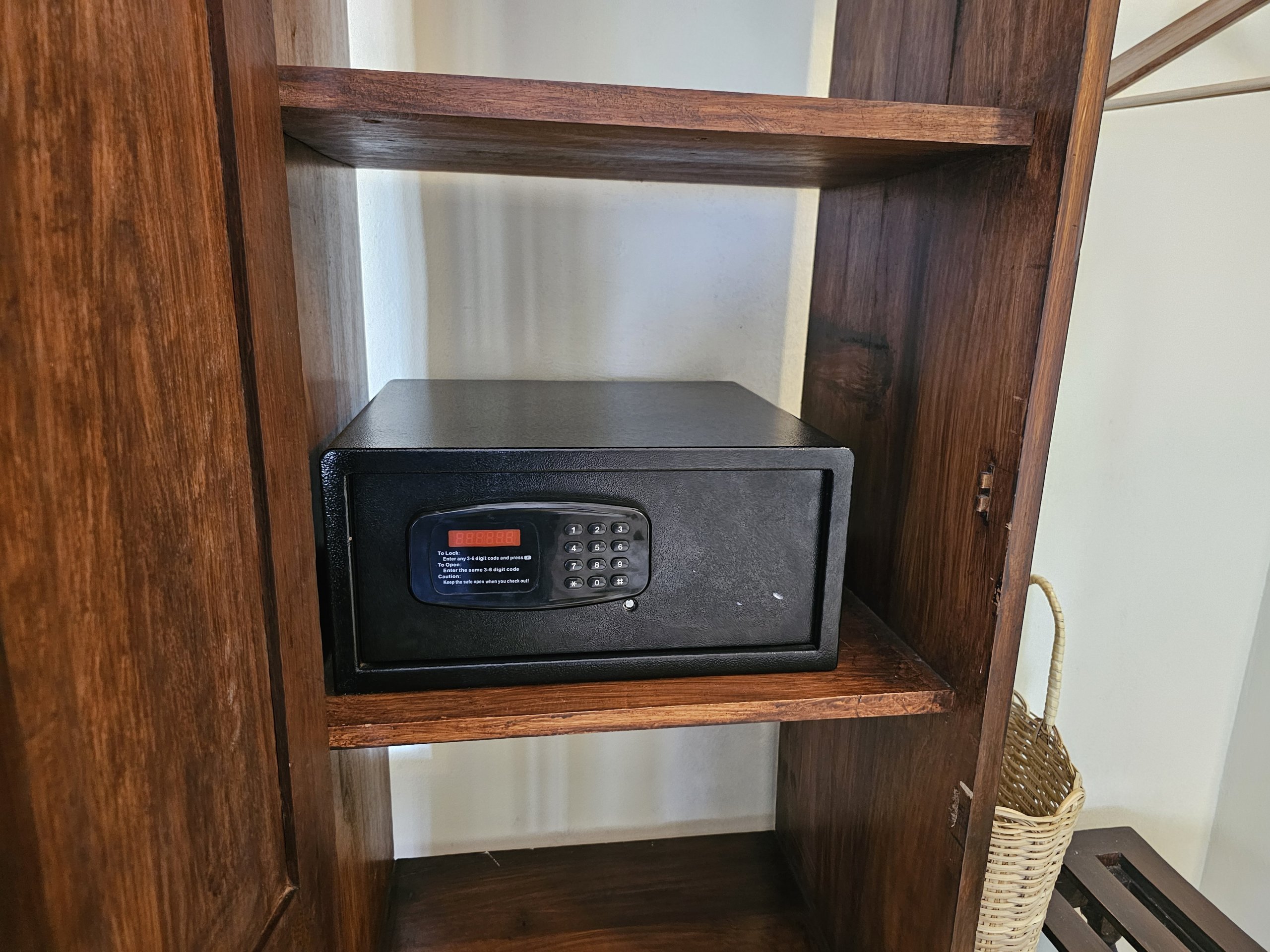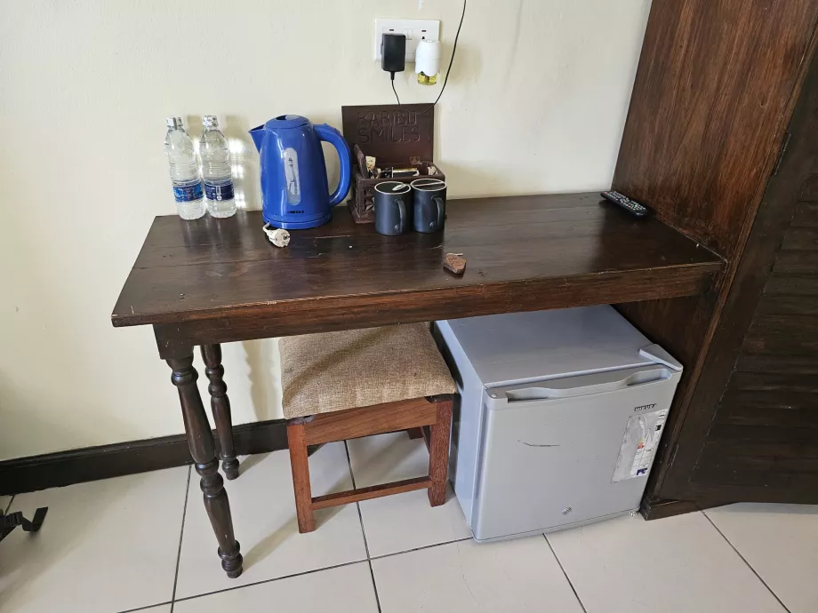Szintén a szobában található széf, strandtörölköző, vízforraló, instant kávé és tea.