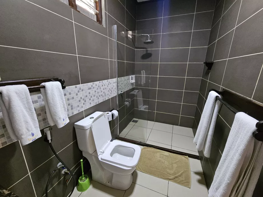 A zuhanyzóban csak fejzuhany van, ami nekem nagyon nem tetszik.