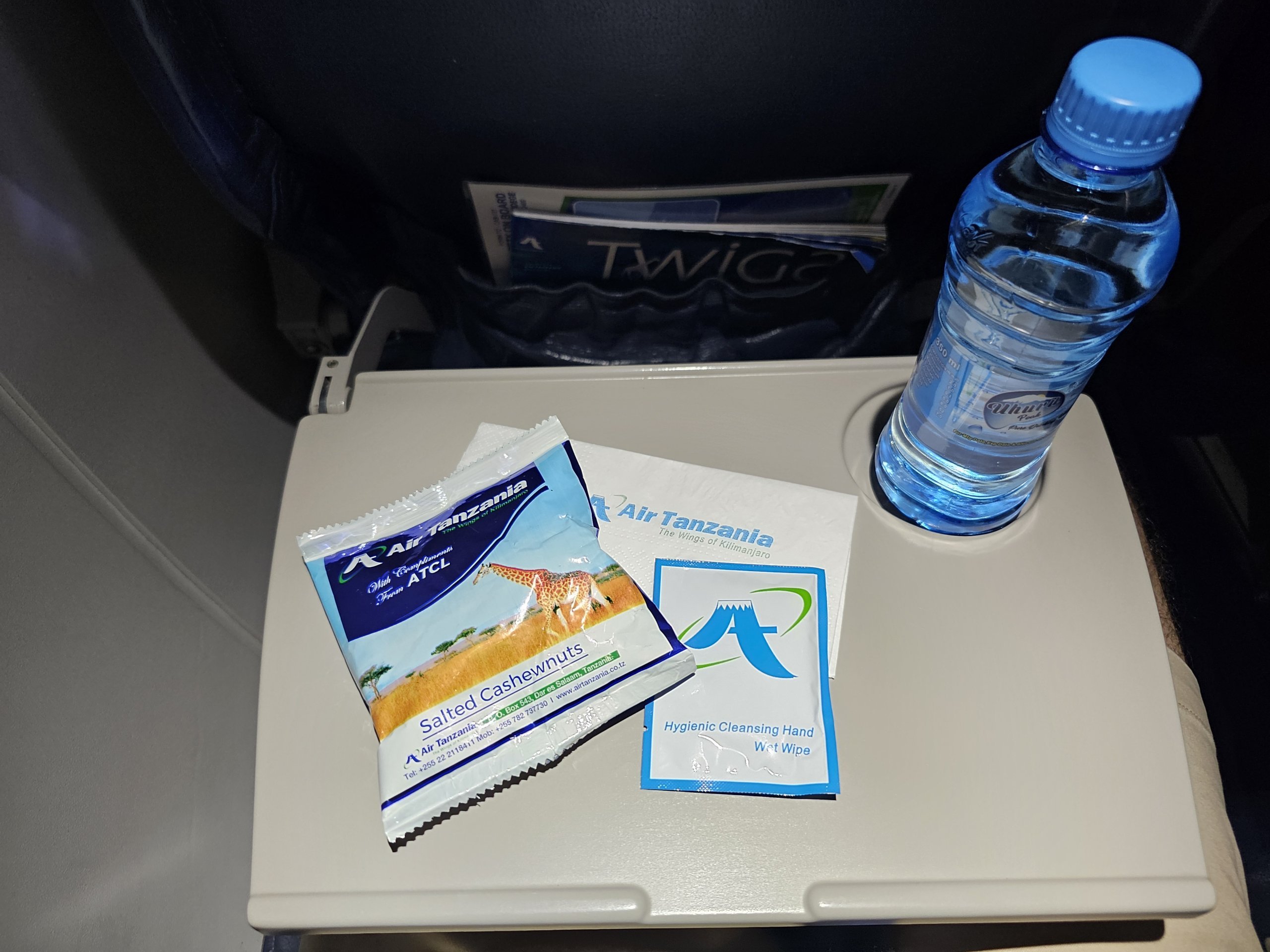 A Tanzánián belüli belföldi járatokon vizet és egy kis édes vagy sós snacket kap.