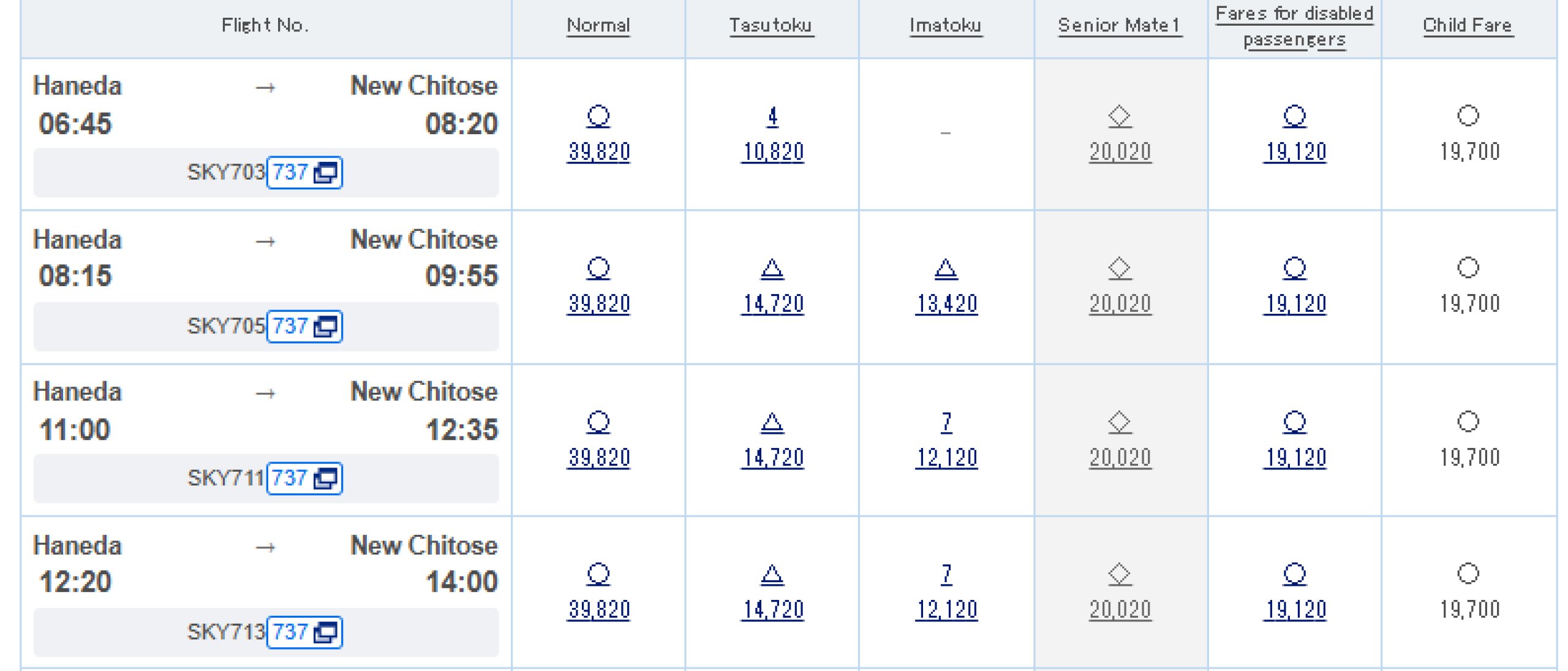 A járatokat általában a skymark.co.jp hivatalos weboldalon árulják.