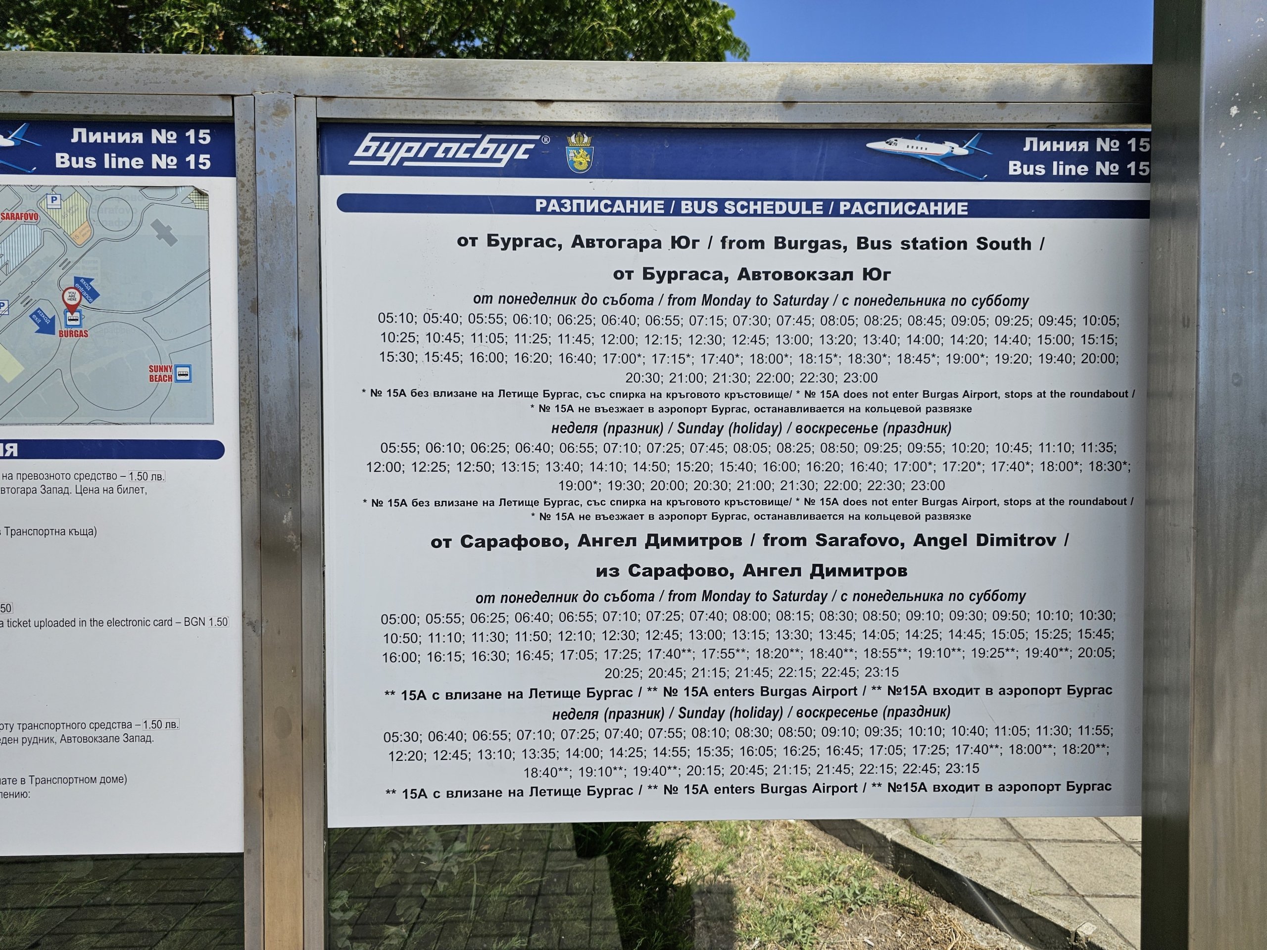 valójában a Sunny Beach irányából csak a 10-es busszal lehet eljutni a repülőtérre. Mi Nessebar és Ravda között vagyunk, és csak a 10-es busz megy arrafelé. Mi Burgaszból jöttünk ide a 22-es busszal, és messze innen tett ki minket. Egyébként az itteni buszrendszer eléggé kusza, fogalmad sincs, hogy mikor jár. Nekünk szerdán kell mennünk a reptérre, és csak várunk a buszmegállóban.