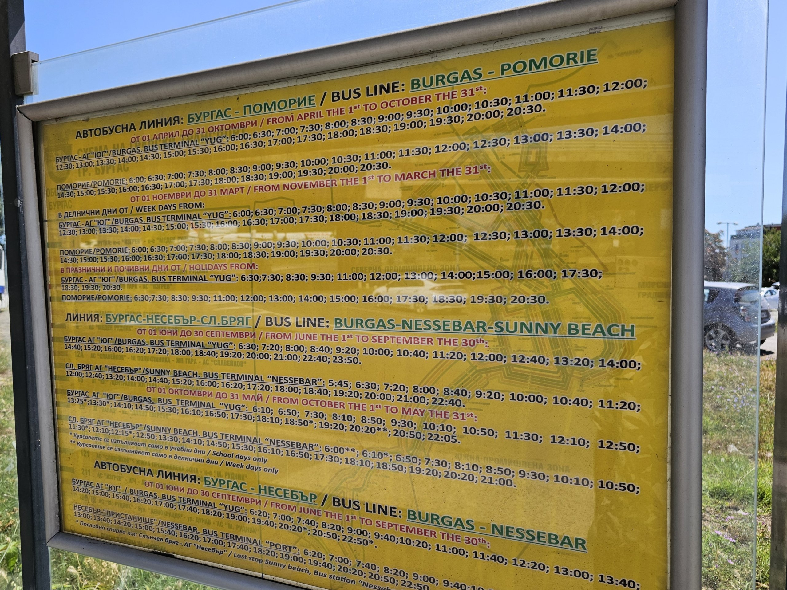 - Nesebar - 1x 20 percenként, az út kb. 35 percig tart és 6 bgn-ért áll.