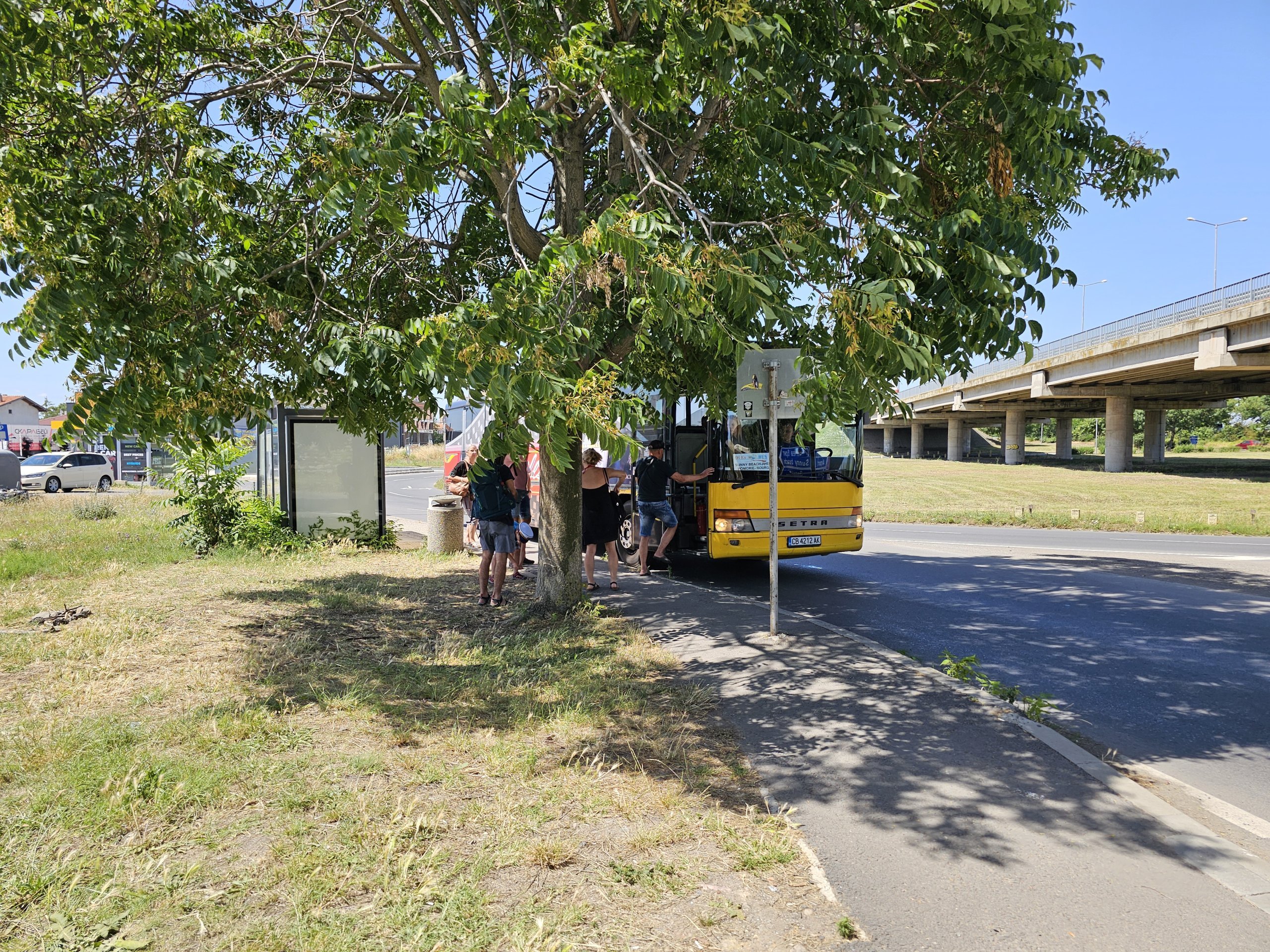 A körforgalom túlsó végén van egy megálló (lásd a térképet) a Burgasz központjából az üdülőhelyekre közlekedő regionális buszok számára.