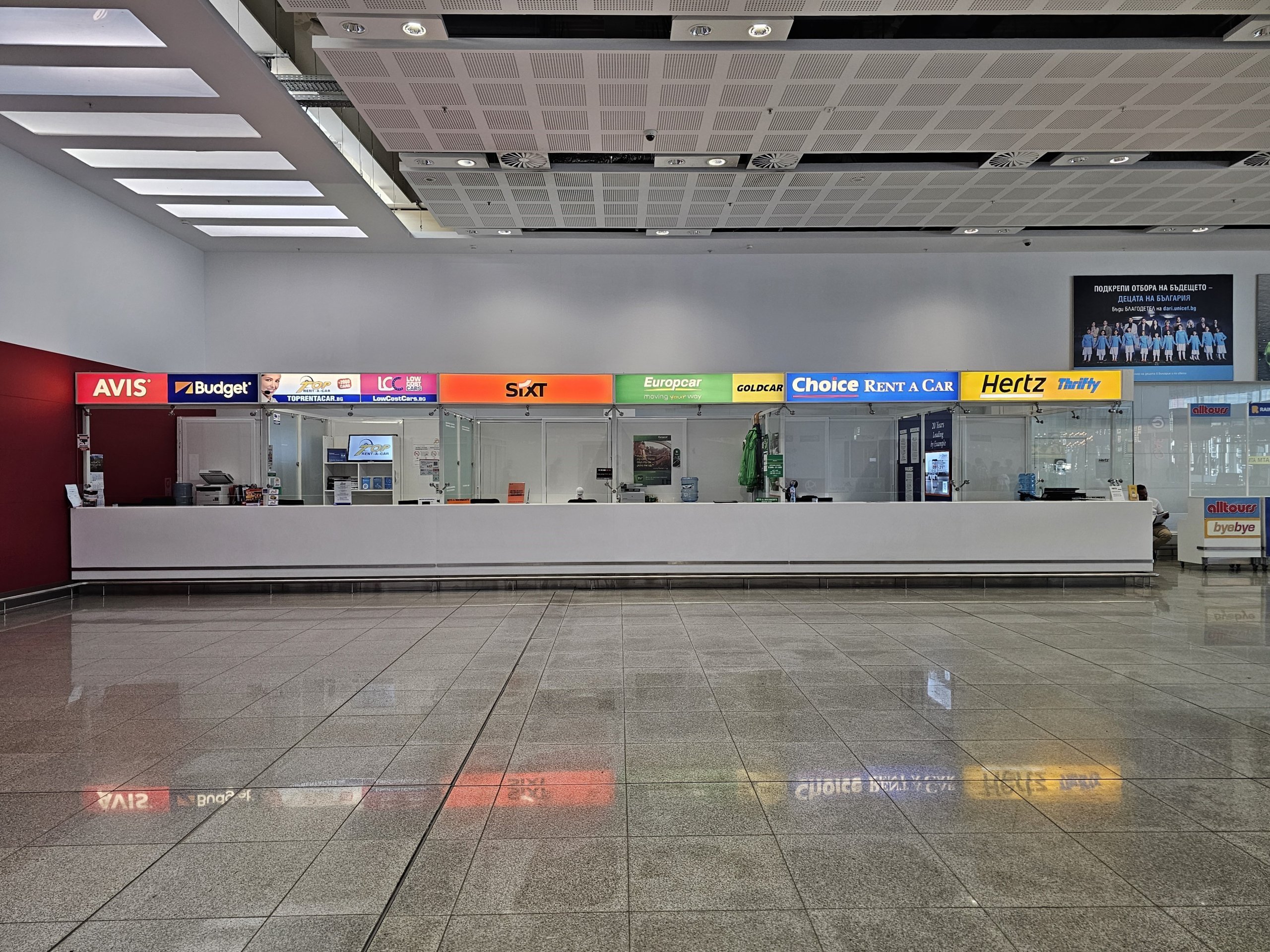 Burgasz repülőterén számos helyi és nemzetközi autókölcsönző cég található.