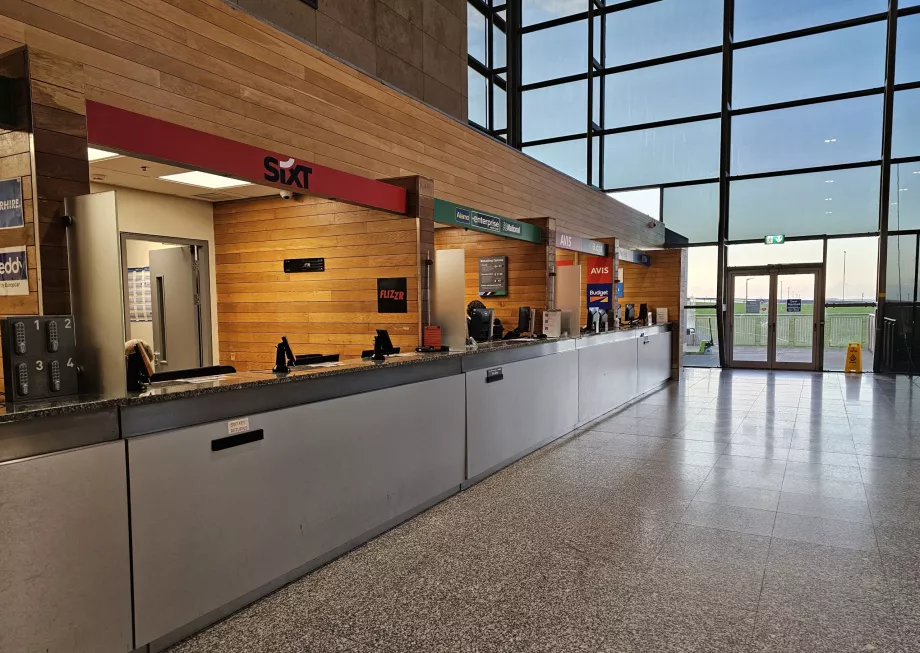 Az érkezési csarnokban számos nagy autókölcsönző cég fiókja található.