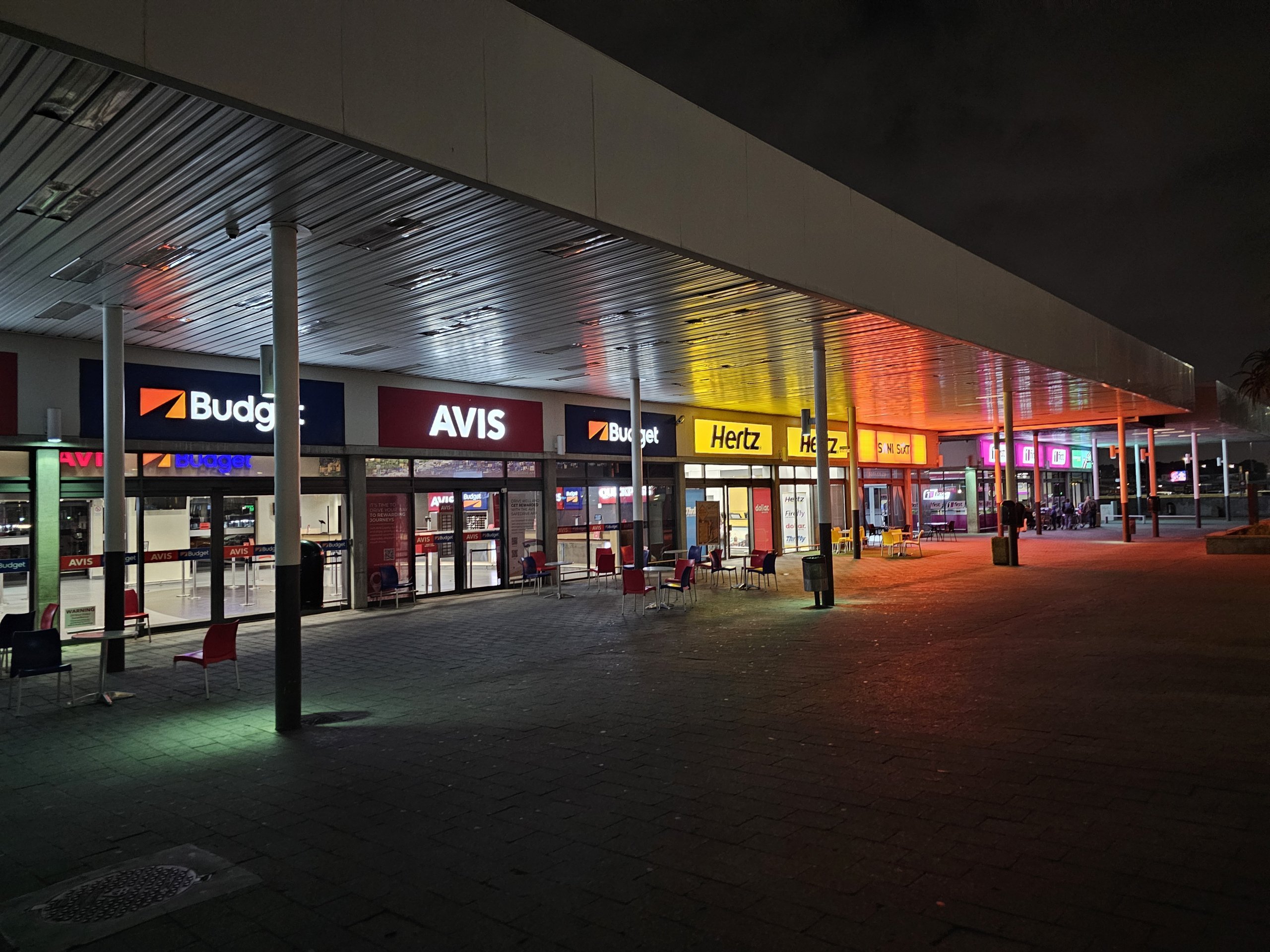 Minden autókölcsönzőhely a termináltól körülbelül 3-5 perc sétára található egy jól jelzett gyalogos út mentén.