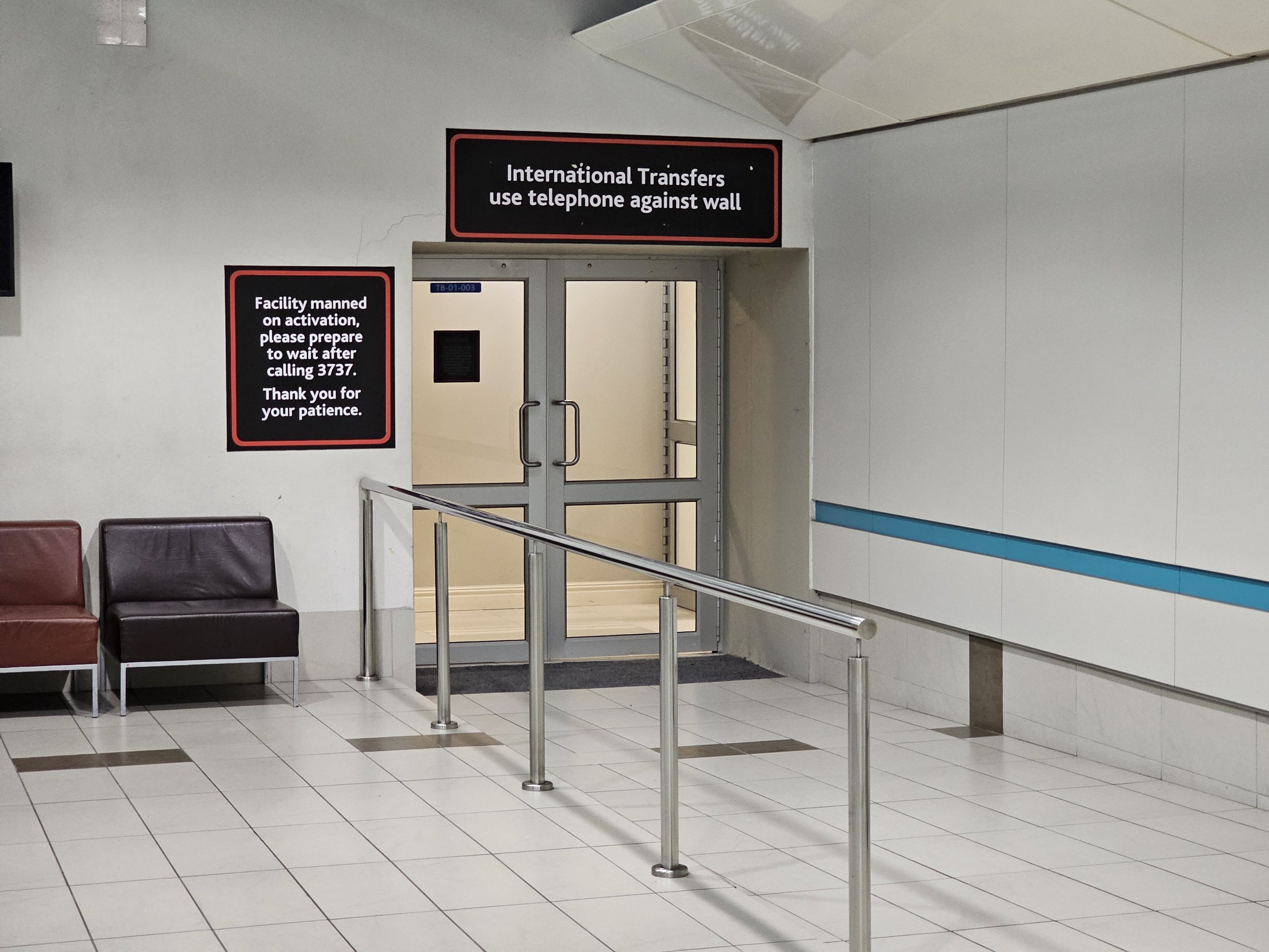 Bár a terminál éjjel-nappal nyitva van, a nyilvános területen gyakorlatilag nincsenek olyan ülőhelyek vagy pihenőhelyek, ahol zavartalanul tölthetné az éjszakát.