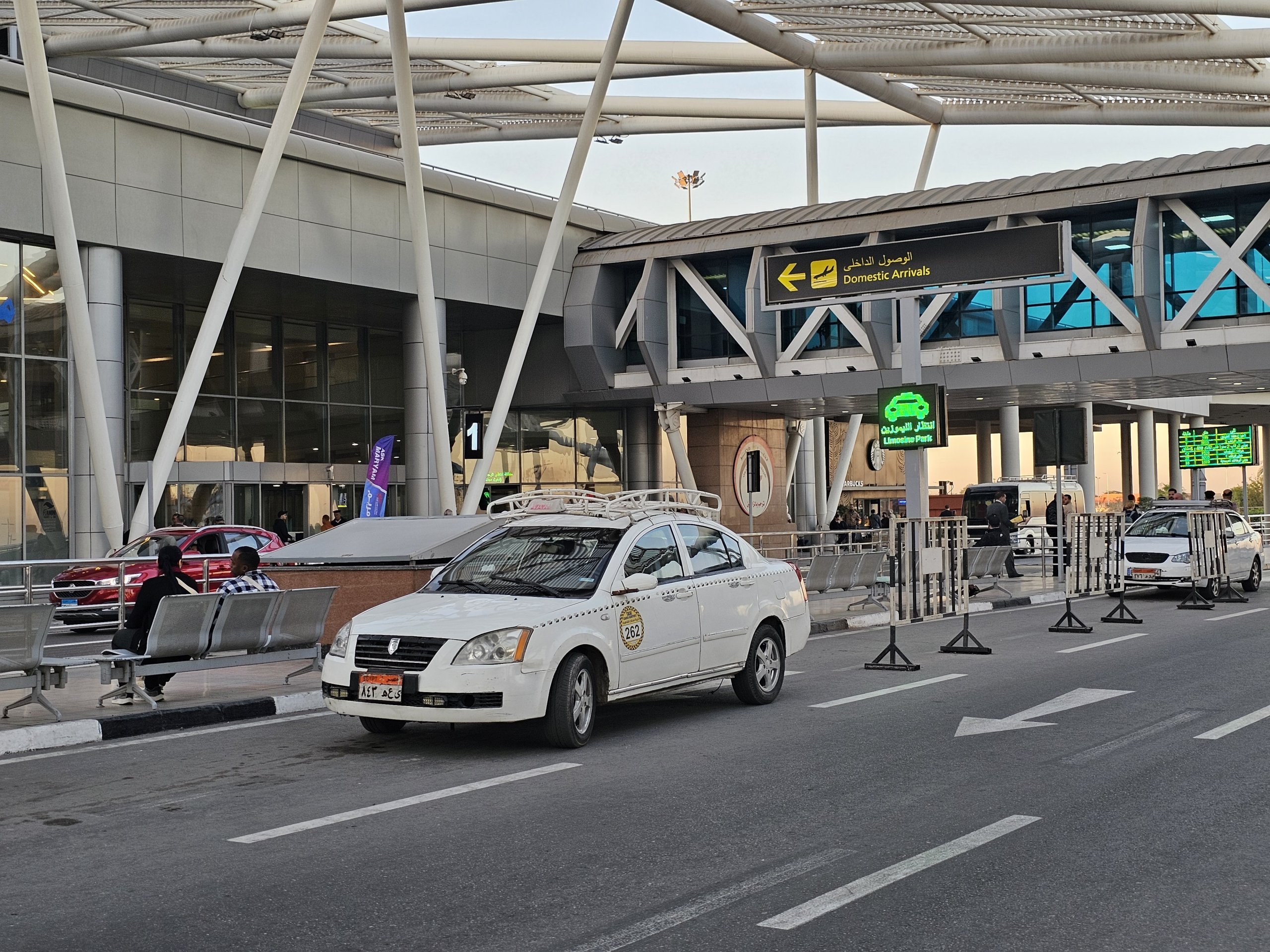 A hivatalos fehér taxik mindenütt jelen vannak a repülőtéren és Kairó területén a nap minden órájában és éjjel.
