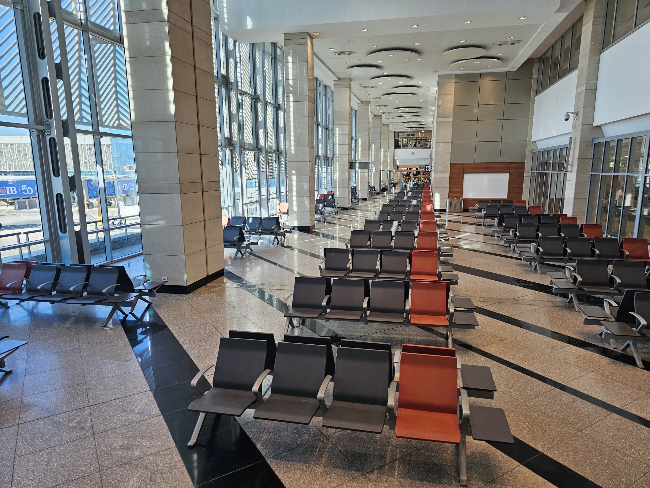 A 2. és 3. terminálon a biztonsági ellenőrzés után az indulási kapuk területén nagyszámú ülőhely van. Ezzel szemben a repülőtér nyilvános területén gyakorlatilag nincs ülőhely.