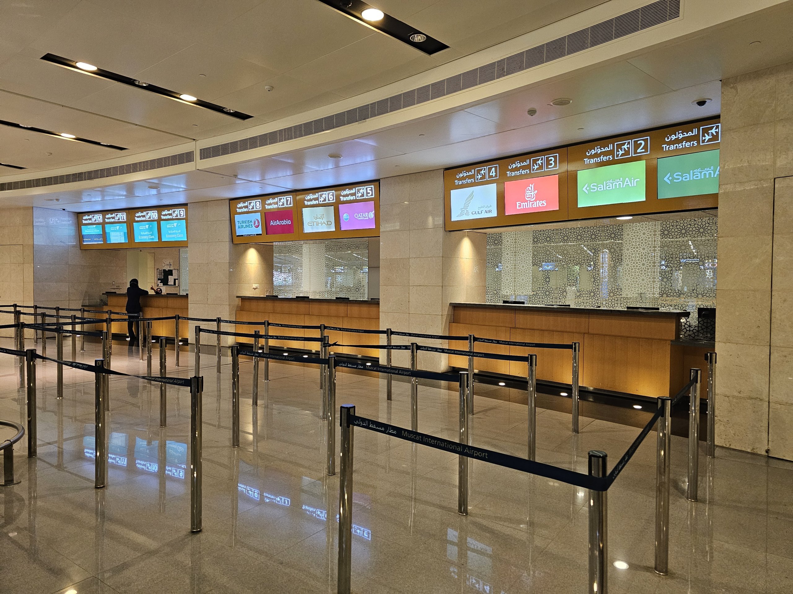 A Muscat repülőtéren a minimális átszállási idő 60 perc, de általában 30 percen belül átszállhat a repülőgépek között.