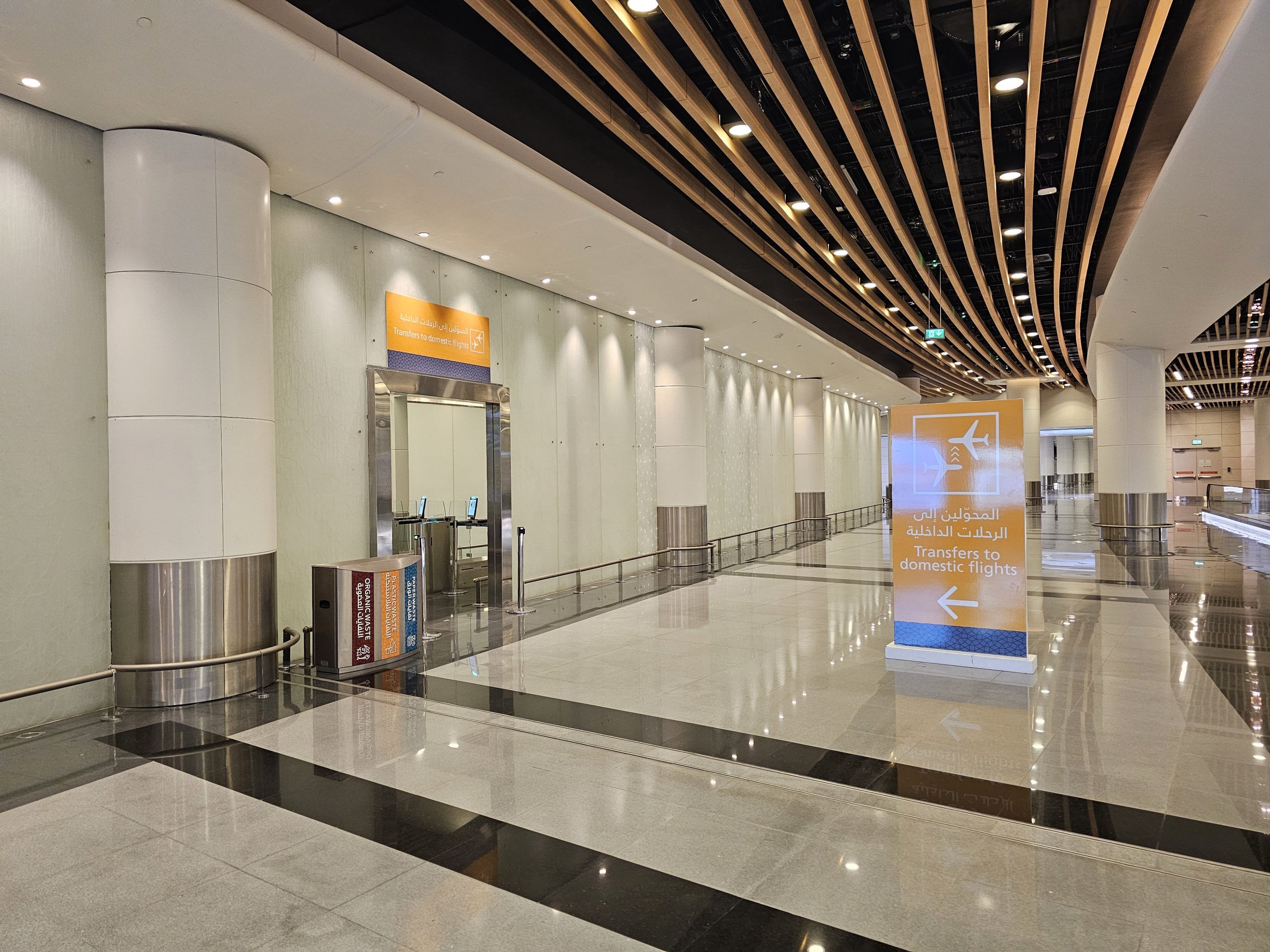 Ha egy Ománon belüli nemzetközi járattal való érkezés után belföldi járattal utazik tovább, nem kell elhagynia a tranzitzónát, és nem kell felvennie a poggyászát.