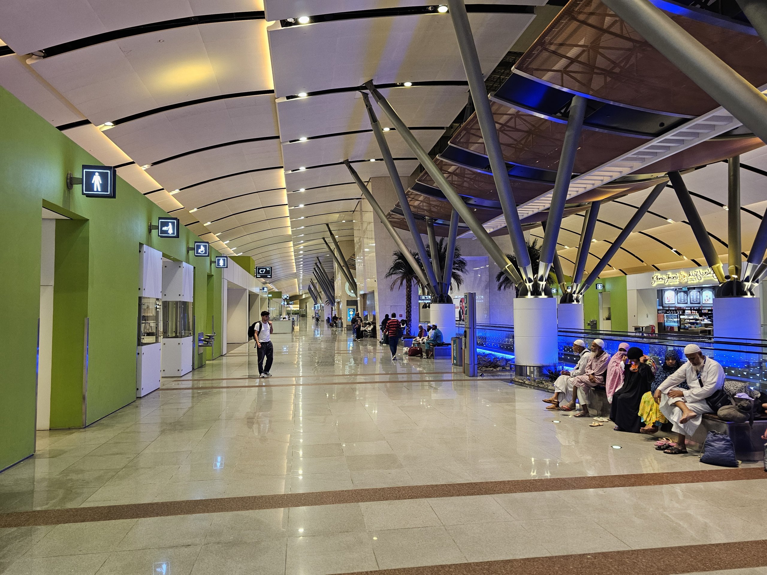 A biztonsági ellenőrzés mögötti terület egy központi, üzletekkel és éttermekkel teli területből és három, indulási kapukkal ellátott kijáratból áll. A távolságok nem nagyok, és a bevándorlási ellenőrzés általában gyors.