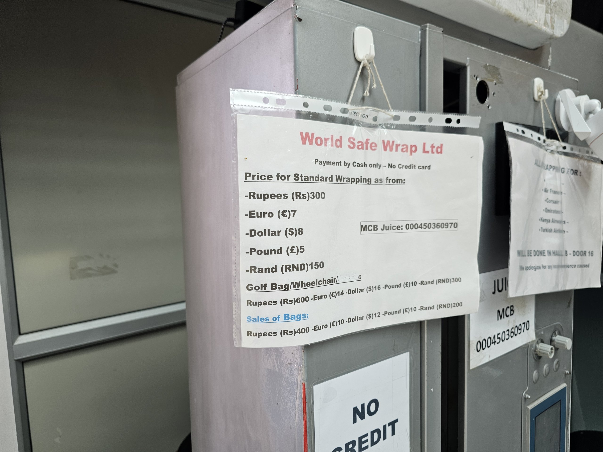 Készpénzzel csak mauritiusi rúpiában, euróban (7 eur), amerikai dollárban (8 usd), brit fontban (5 gbp) vagy dél-afrikai randban (150 zar) lehet fizetni.