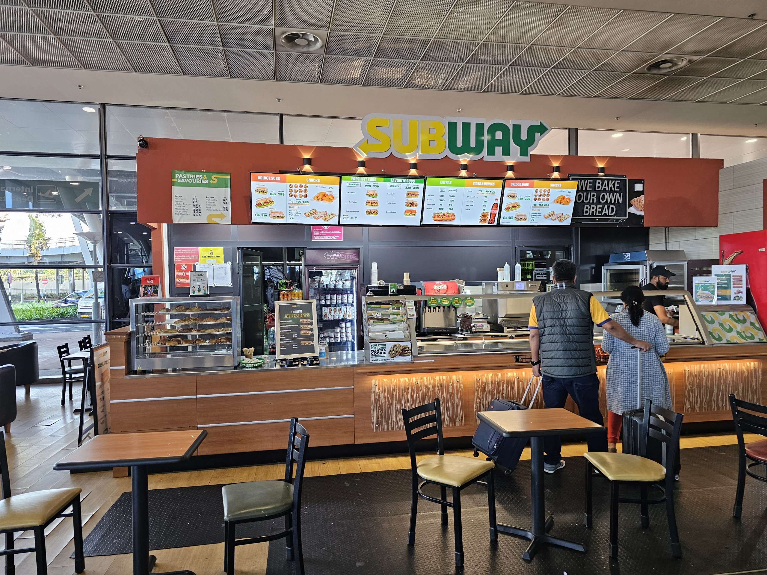 Az érkezési csarnok nyilvános területén található egy Subway gyorsétterem (7:00-0:00) és a Paul's Bakery (7:00-22:00).
