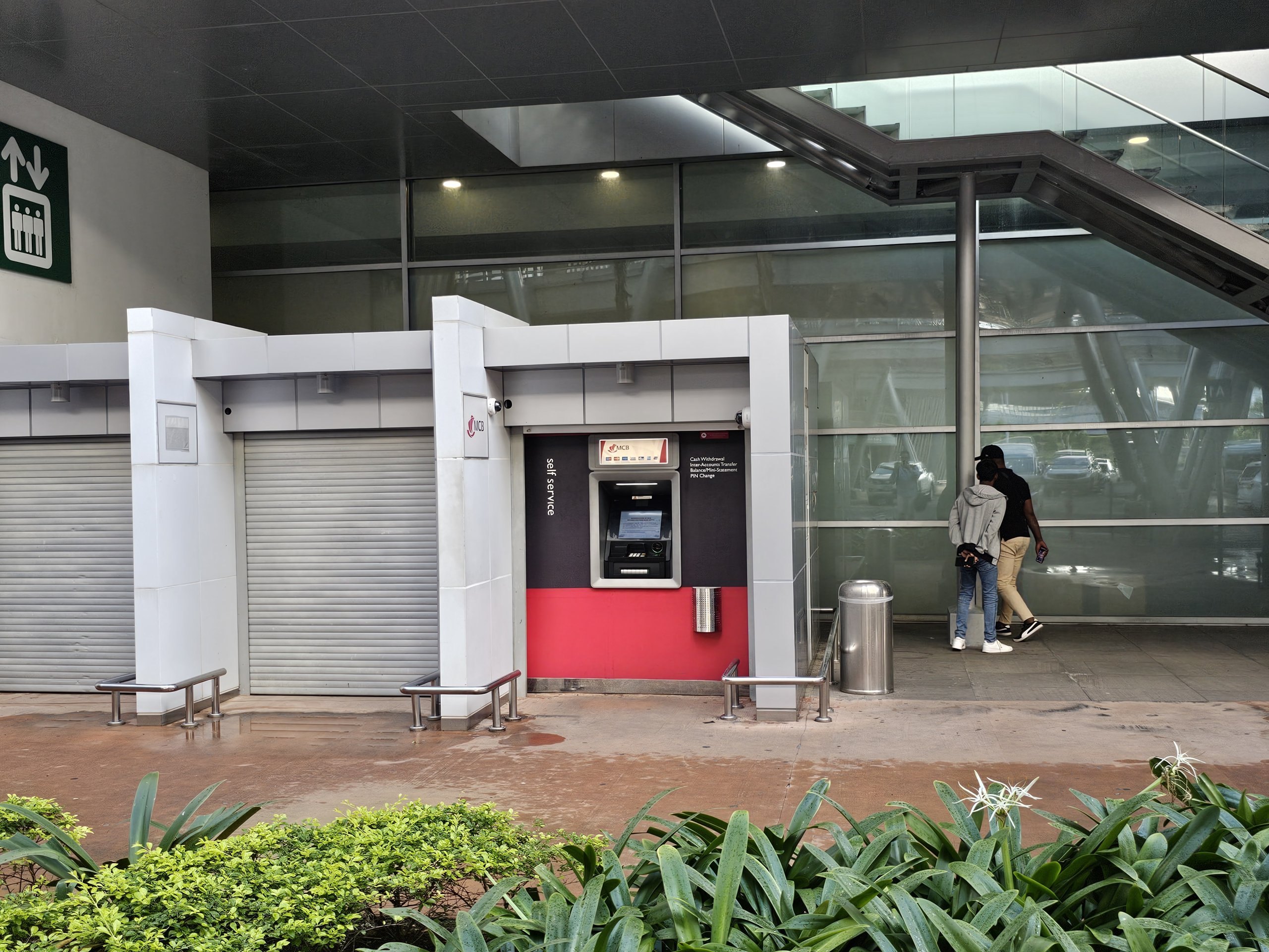 ATM-ek találhatók a poggyászkiadó melletti tranzit területen, majd az érkezési csarnok előtt is.