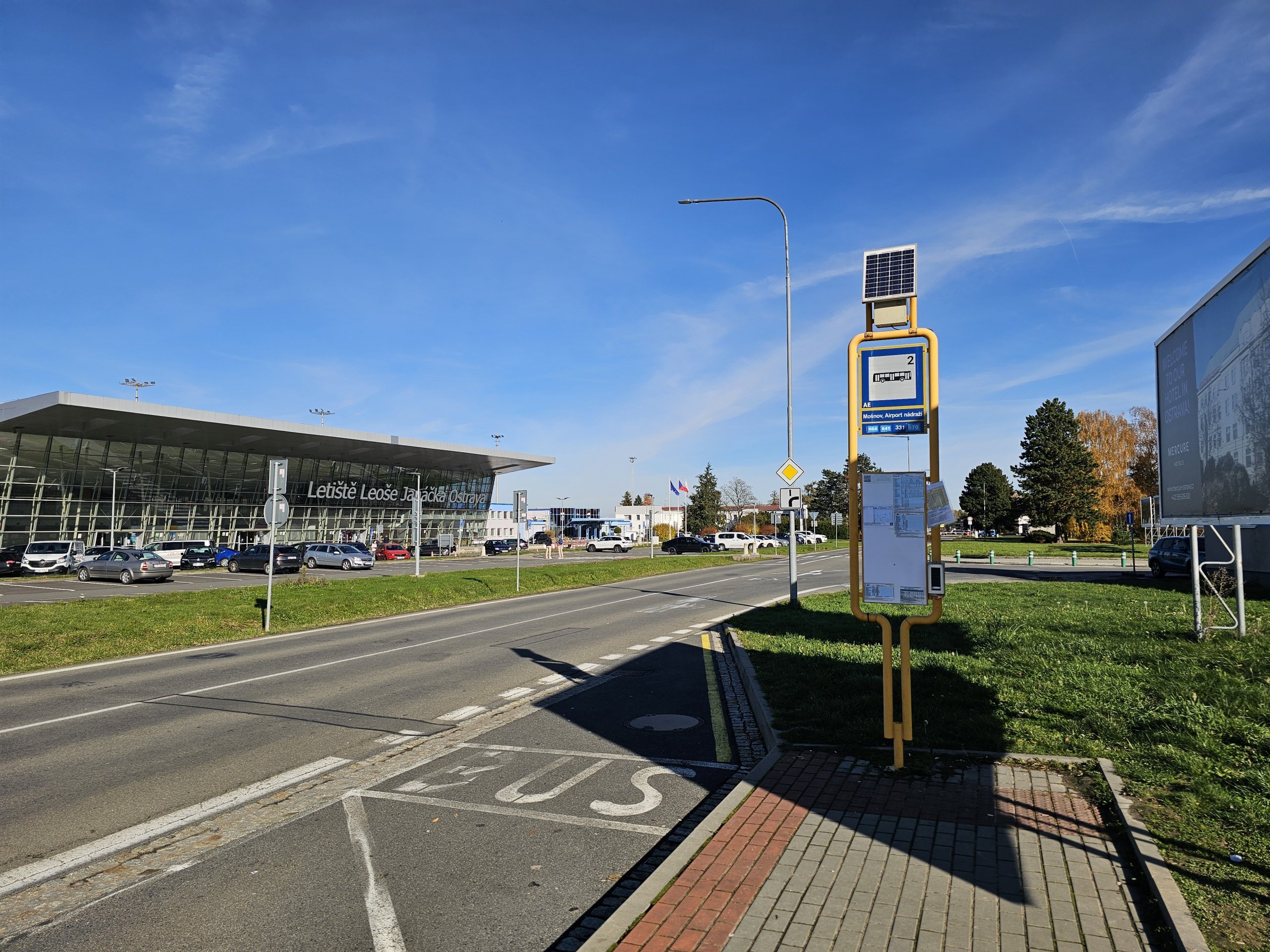 - Vonal AE – Airport Express - a városközpontba (Hornopolní megálló) és a központi buszpályaudvarra közlekedik. Megáll a Dubina negyedben vagy a városi stadionnál is.