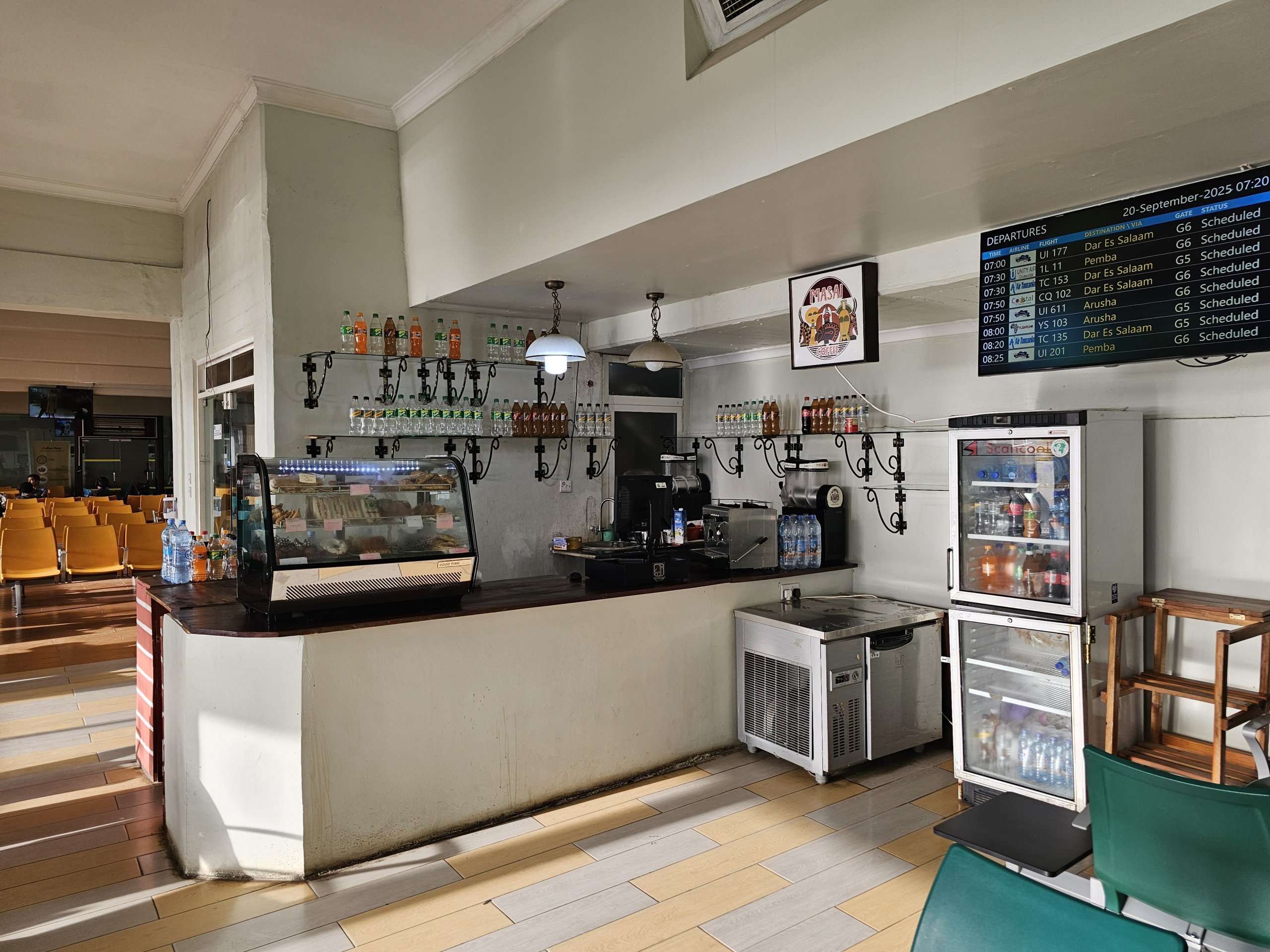 A kis 2-es terminálon lényegesen több helyi bisztró van a check-in csarnokokon kívül. Az árak itt is magasabbak, mint máshol Zanzibárban, de alacsonyabbak, mint a 3. terminálon.